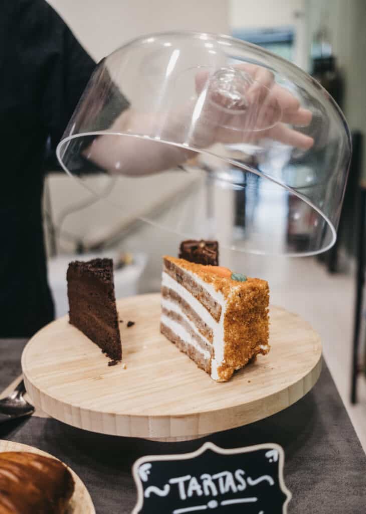 - Tartas caseras irresistibles: triple chocolate, zanahoria, queso con dulce de leche (un guiño a sus raíces), chocolate con toffee…
