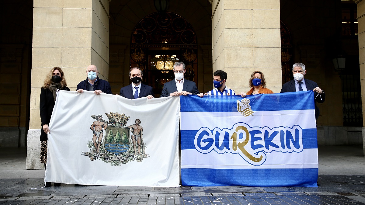 Después de recorrer Gipuzkoa con el autobús oficial recogiendo las banderas de todos sus municipios, el recorrido de la Real Sociedad ha concluido hoy con la visita a la Diputación Foral y al Ayuntamiento de San Sebastián.