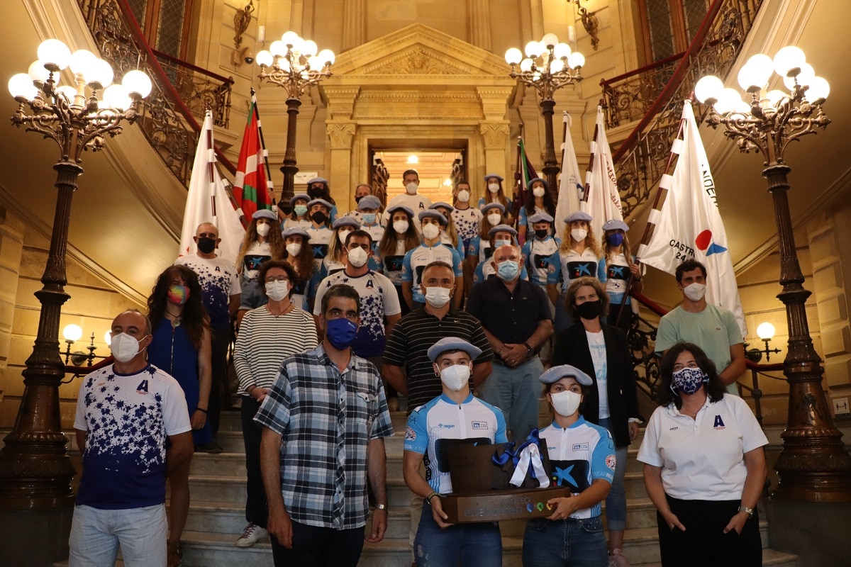 El Ayuntamiento de Donostia recibió ayer a remeras, cuerpo técnico y directivos de Donostia Arraun Lagunak, que se proclamó campeón de la Liga EuskoTren de traineras el pasado fin de semana.