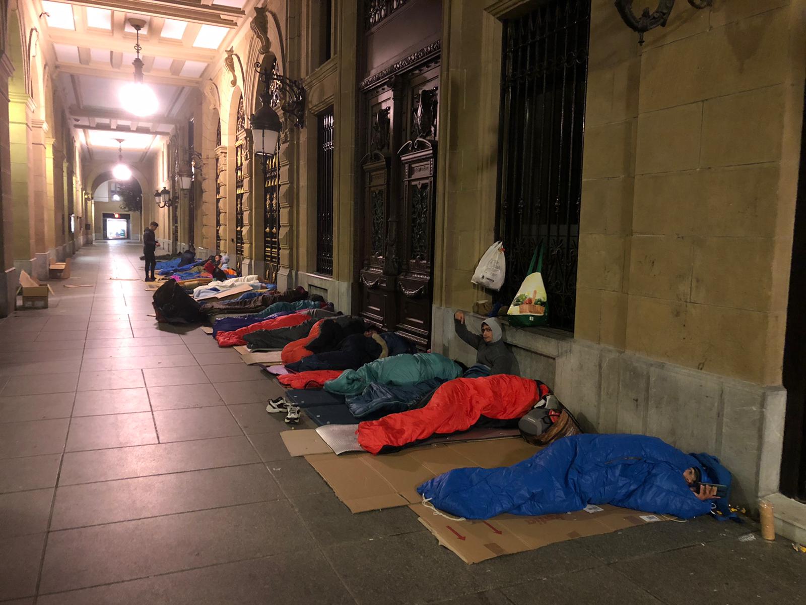 Desde los dos colectivos recuerdan que cerca de 250 personas duermen en las calles de Donostia en situaciones, como las de estos días, extremas.