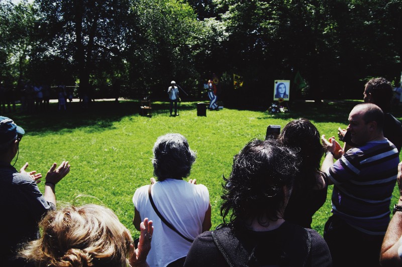 Alrededor de 250 personas han participado hoy al mediodía en el homenaje a Gladys del Estal que Eguzki ha organizado en Donostia. Los participantes se han congregado en la puerta de Gladys Enea (oficialmente Cristina Enea), desde donde, acompañados por música de trikitixa, han ascendido en romería hasta la pradera, donde se encuentra el monolito de Gladys.