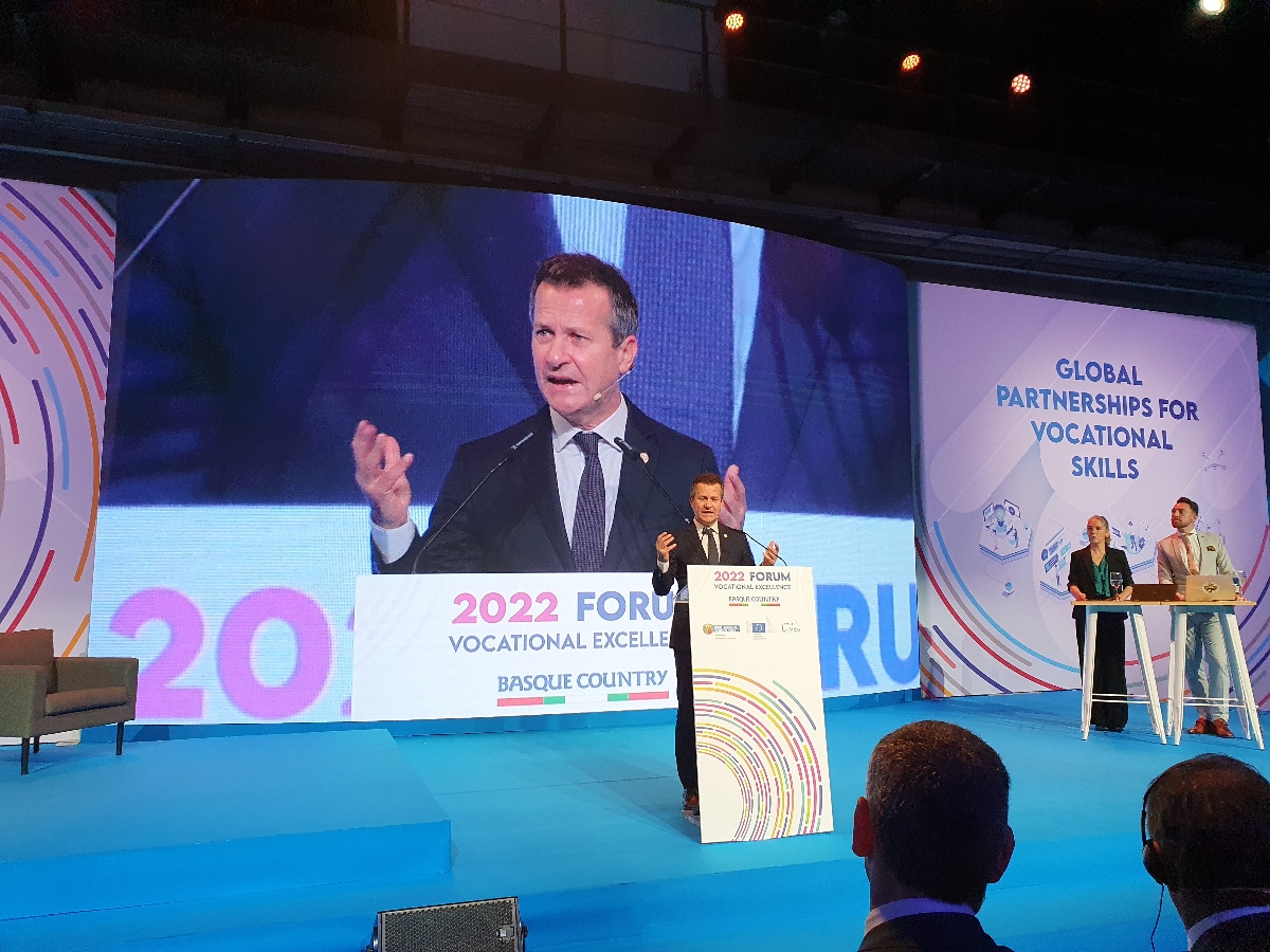 La celebración de este evento en San Sebastián tiene su origen en la reunión que Jokin Bildarratz mantuvo a finales del mes de junio en Bruselas con el comisario Schmit, en la que se definió este foro internacional y su objetivo principal: dar difusión a la iniciativa CoVE de Centros de Excelencia Profesional.