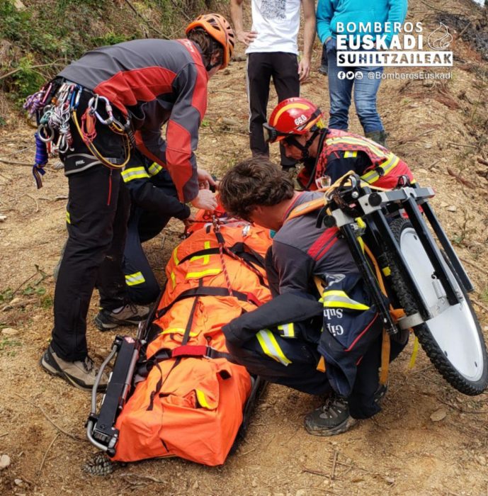 El hombre estaba herido en una pierna, en el codo y la cadera, y tras haber sido rescatado el helicóptero lo ha dejado en el campo de fútbol de Zumarraga, desde donde una ambulancia lo ha trasladado al hospital.