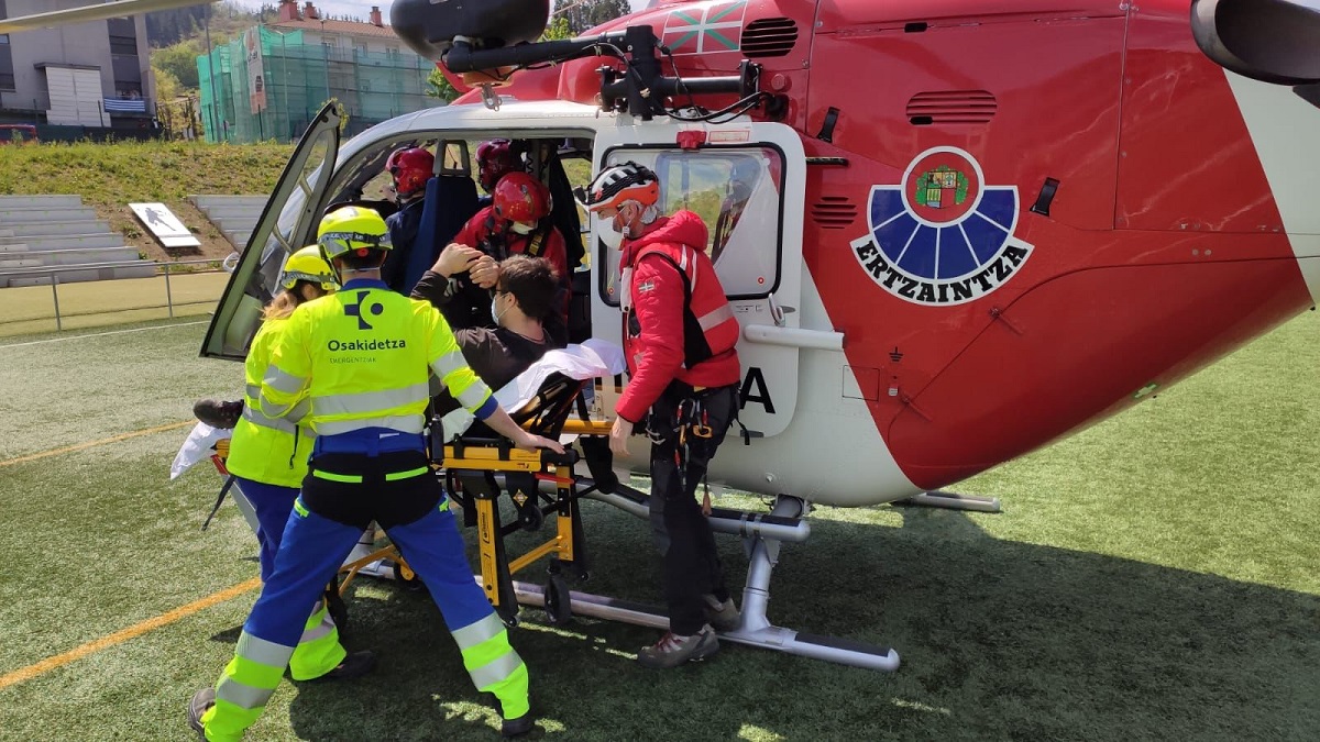 Tras la estabilización del accidentado, el helicóptero lo ha trasladado hasta el campo de fútbol de Zumarraga, donde le esperaba una ambulancia que lo ha evacuado al hospital de esa localidad.