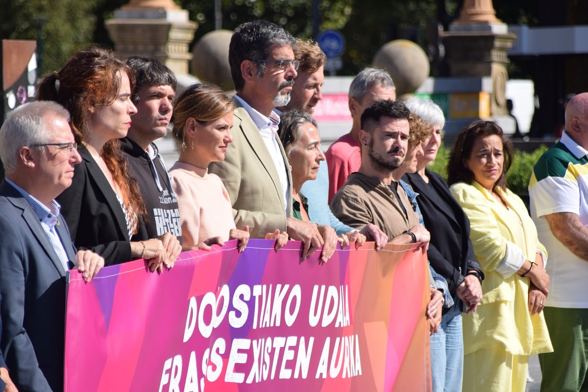 Los miembros de la Junta de Portavoces del Ayuntamiento de San Sebastián se han concentrado este mediodía en Alderdi Eder para condenar de forma unánime la última agresión sexual denunciada en la ciudad: la presunta violación de una menor de 14 años en Riberas de Loiola. Asimismo, representantes de la Diputación Foral de Gipuzkoa se han acercado para formar parte de la concentración. En casos así, señalaba antes en rueda de prensa el alcalde Eneko Goia, «hay que expresar la más rotunda condena» contra los agresores, «y nuestra proximidad con la víctima y la familia de la víctima».