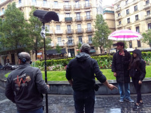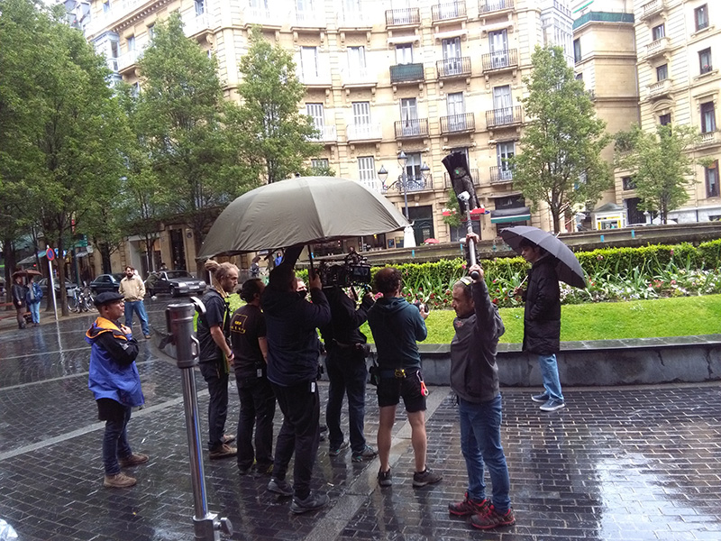En una lluviosa mañana donostiarra transcurrió este miércoles el rodaje de ‘Patria’, la novela de Fernando Aramburu y primera producción española de HBO. Recientemente, a finales de abril, fueron grabadas varias escenas en la Parte Vieja donostiarra rememorando tiempos políticamente convulsos en las calles. Este miércoles era el actor Eneko Sagardoy el protagonista en la plaza Bilbao y el ambiente era más íntimo.