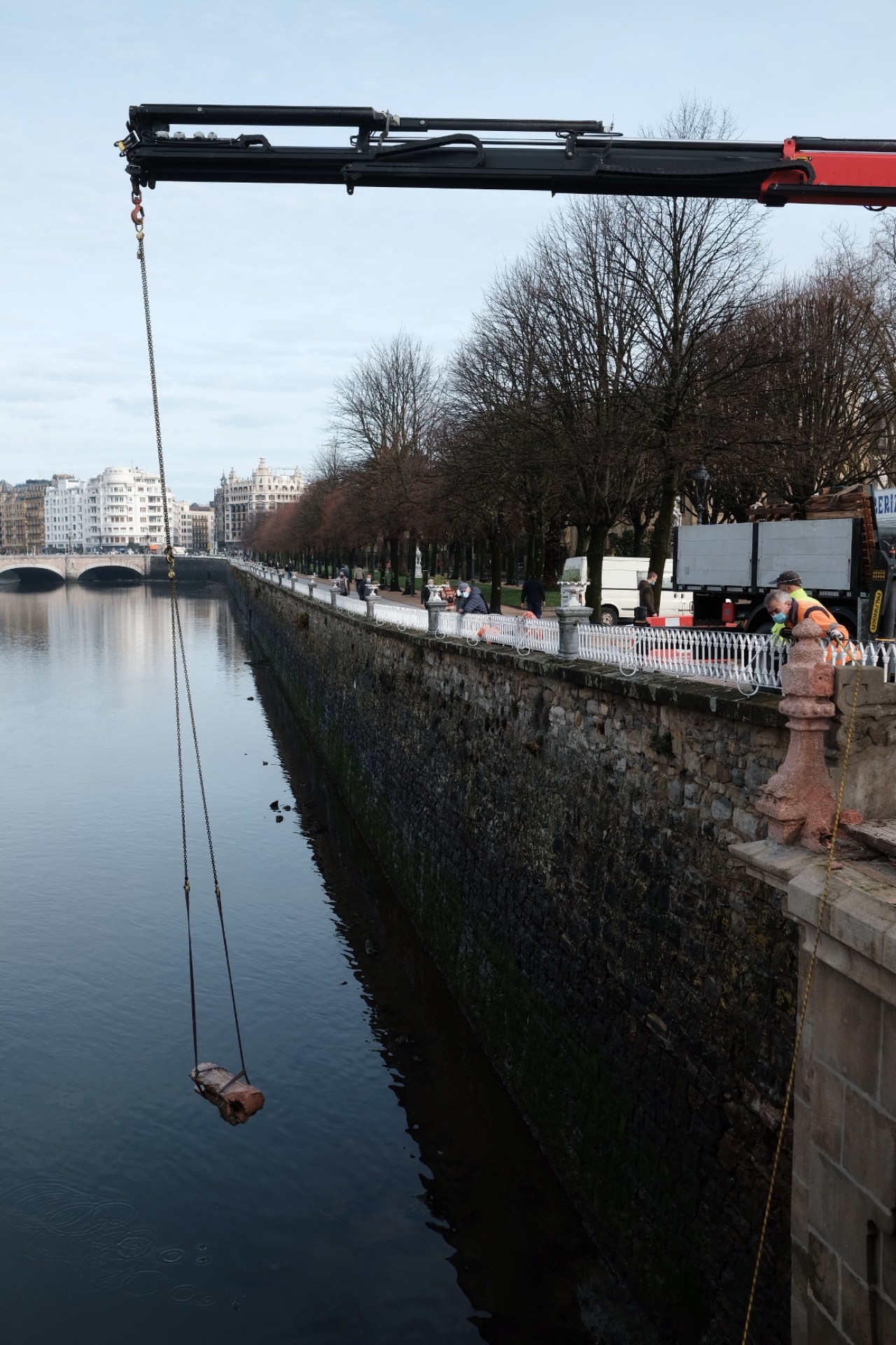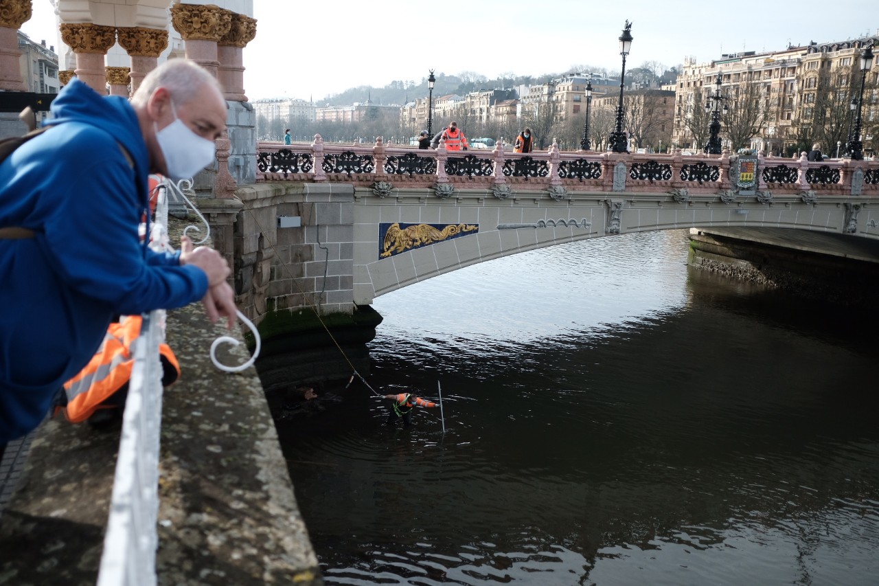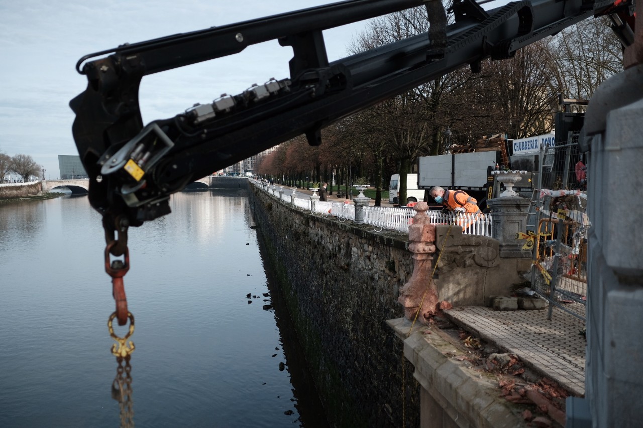 Un grupo de operarios ayudado de una grúa ha logrado sacar esta mañana del río Urumea de Donostia la barandilla que cayó al agua con motivo del accidente del pasado 30 de diciembre en que un agente de la Ertzaintza perdió la vida. No han trascendido aún destalles de la investigación que llevan a cabo Guardia Municipal y policía vasca.