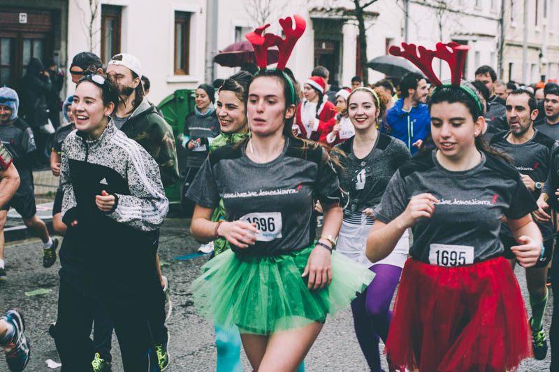 Contra viento y marea han corrido hoy miles de participantes en la San Silvestre donostiarra, que ha partido puntualmente del Antiguo en un momento en que arreciaba el viento y además la lluvia había hecho aparición minutos antes. Pese a la oscuridad climatológica, los disfraces y el buen humor han dado color a la carrera y pocos de los 4.400 corredores apuntados han decidido quedarse en casa.