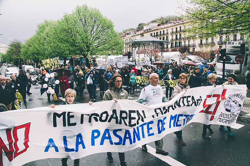 El movimiento vecinal Satorralaia ha convocado para el 2 de junio una manifestación contra la pasante de Metro en Donostia. «El arranque inminente de las obras subterráneas del Metro con una primera maquina rozadora a la altura del polideportivo Pio Baroja nos obliga a dar alarma. Desde esta rampa de ataque el proyecto prevé ejecutar la perforación del trazado bajo la Concha y el barrio del Antiguo a la vez que las constructoras han extendido las zonas de obra a la Plaza Bentaberri, Morlans, Calle Autonomía, Paseo de Errondo y continúan excavando el emboquille para otro túnel de acceso a la obra en la Avenida de Zarautz», se ha expresado la plataforma por medio de un comunicado en que reitera que se trata de una obra «innecesaria y con afecciones para la ciudad».
