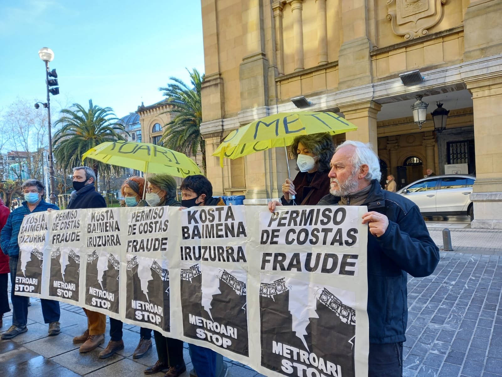 El movimiento vecinal Satorralaia ha denunciado esta mañana frente al Ayuntamiento de San Sebastián que la resolución adoptada por la Dirección de Costas que permite reanudar las obras del túnel bajo la playa de la Concha «confirma el fraude y el engaño que han caracterizado su actuación en el asunto del Metro».