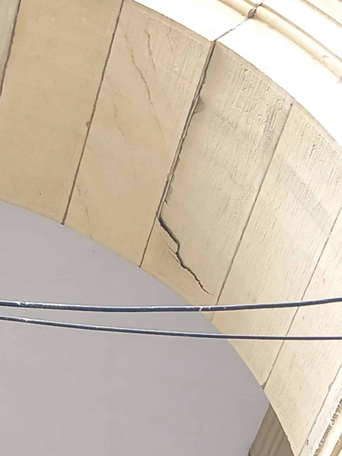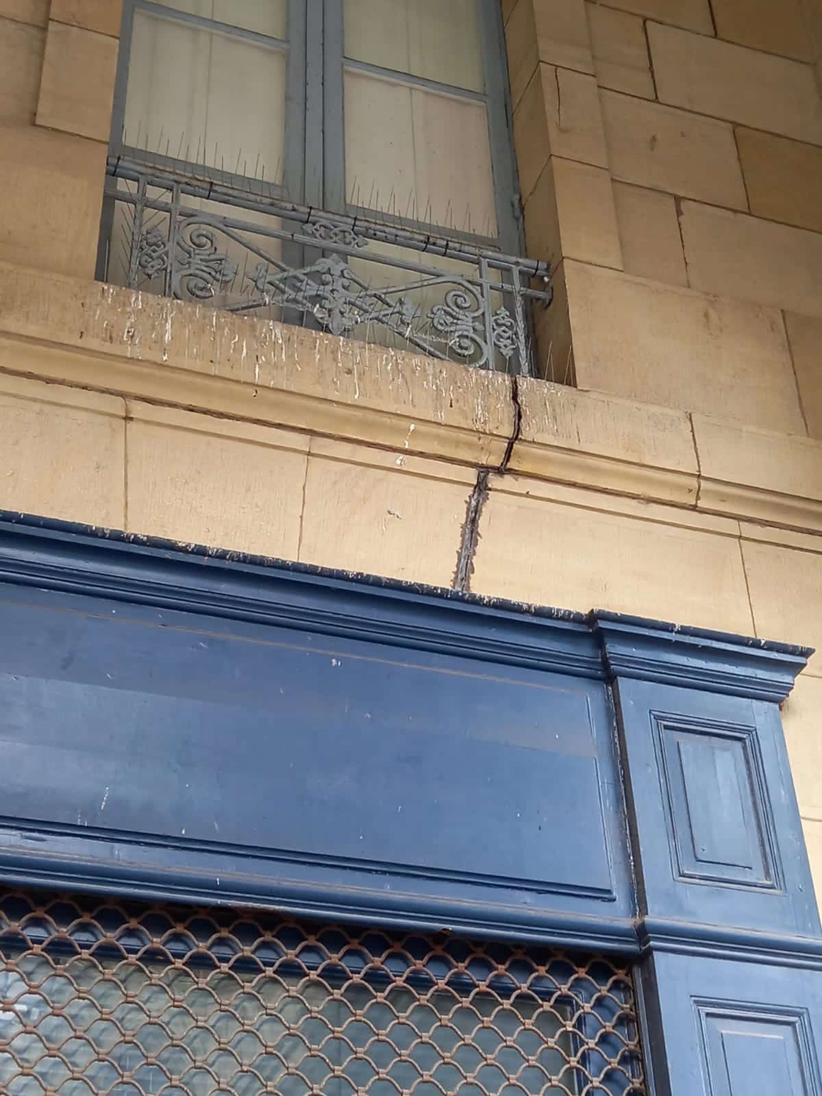 Según el colectivo, las fisuras visibles en las piezas de sillería del arco del edificio de la Calle Loiola nº 14 se deberían a las obras del Metro «y no han pasado desapercibidas a los propietarios que al parecer están en contacto con Euskal Trenbide Sarea (ETS)».