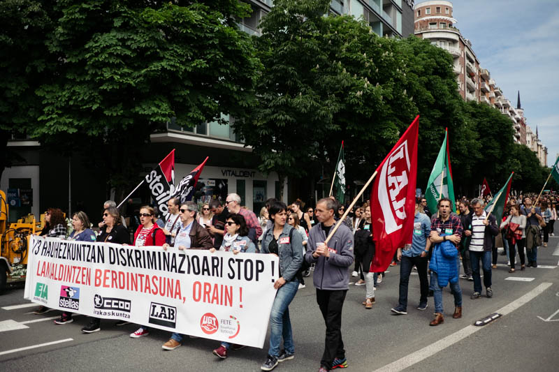Desde el Centro donostiarra hasta la sede de Kristau Eskola en Amara se han trasladado hoy trabajadores de la educación concertada llamados a la huelga por ELA, STEILAS, CCOO, LAB y UGT. Ayer la manifestación fue en Bilbao y si algo queda claro es que las posiciones están enconadas y no se atisba un final para el conflicto. Son 24 días de huelga los que se han vivido este curso y los sindicatos ya piensan en más medidas de fuerza para el curso que viene.