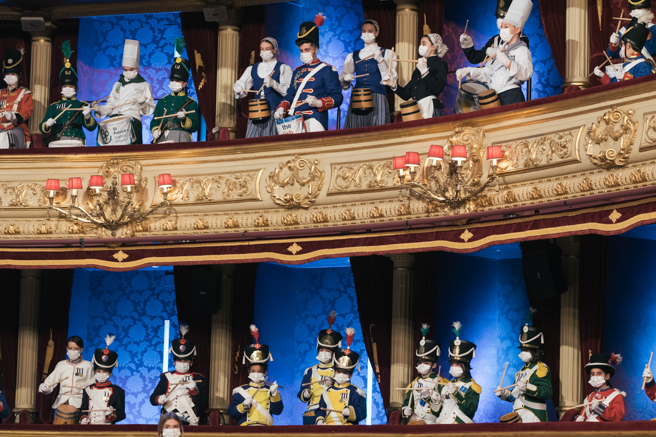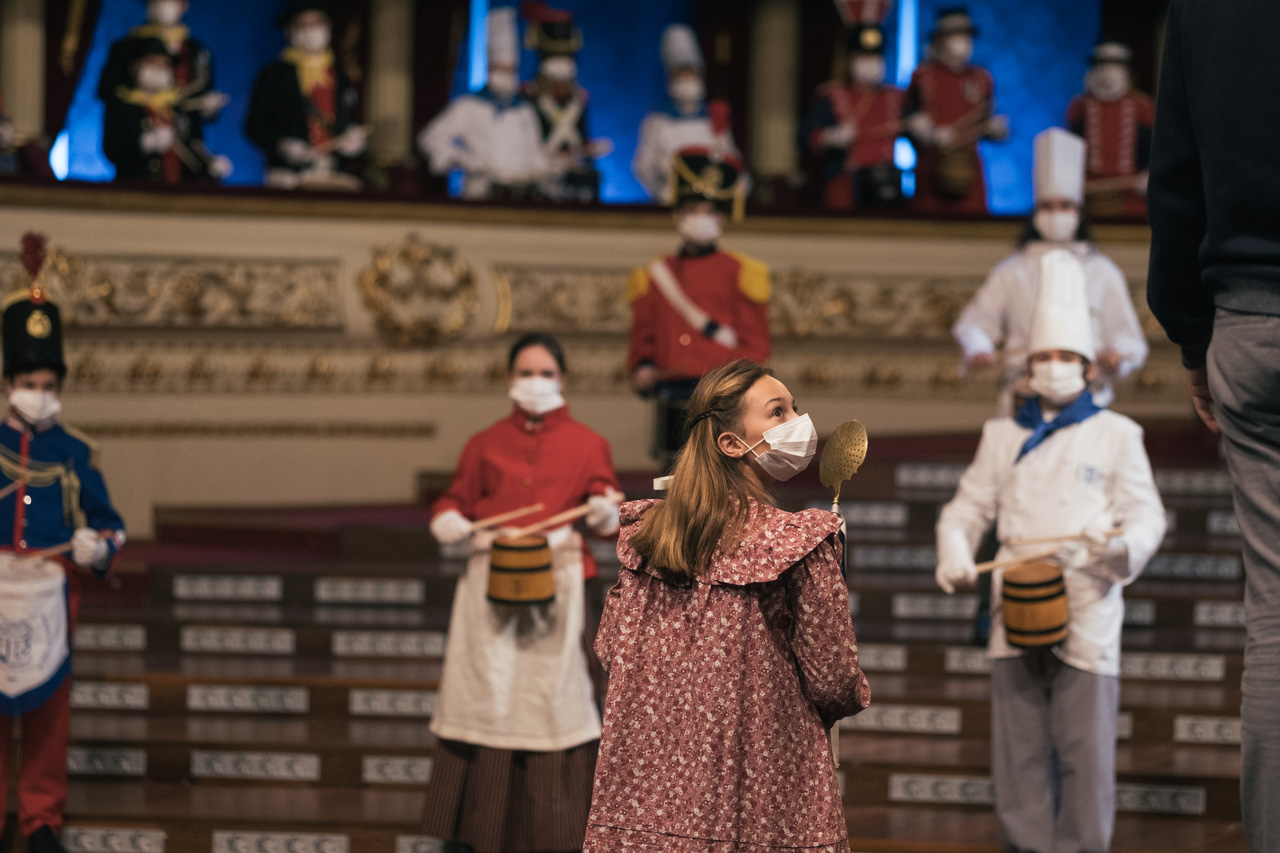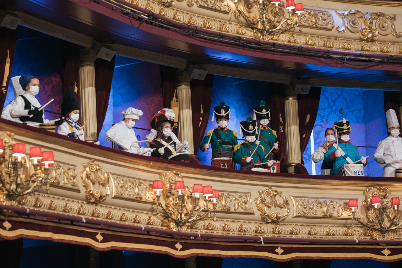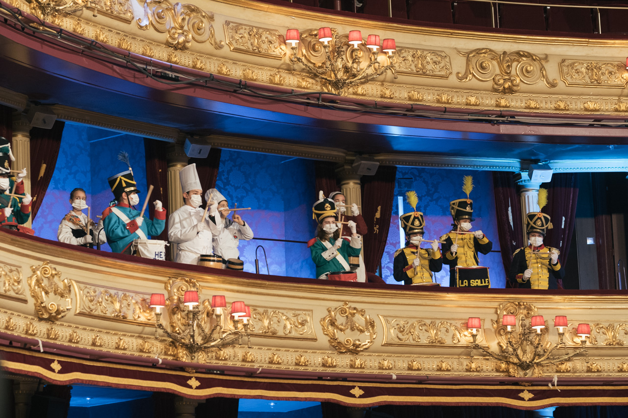 Hoy se han abierto las puertas del teatro y los presentes han podido disfrutar de parte de la grabación en que los chavales de distintos, perfectamente pertrechados, respetaban las medidas de seguridad y tocaban las marchas de Sarriegi en un escenario poco habitual.