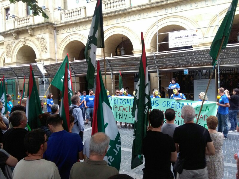 Los trabajadores han protagonizado esta mañana una protesta frente a la Diputación a la que ha acudido el secretario general de Ela Txiki Muñoz.