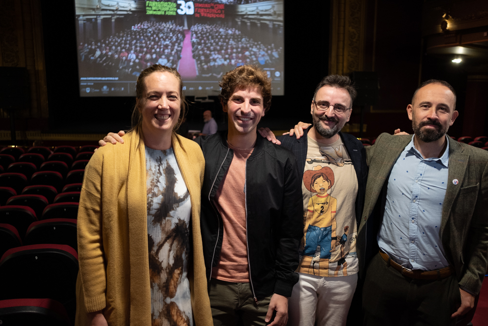 En la presentación que ha tenido lugar en el Teatro Principal este mediodía se han dado cita el concejal de Cultura Jon Insausti, el diputado Denis Itxaso, Aitziber Atorrasagasti (directora de Promoción Cultural del Gobierno Vasco) y Josemi Beltrán, director de la Semana de Cine Fantástico y de Terror. E igual que el resto de los presentes lo primero que han hecho ha sido apreciar con detalle el cartel de esta edición, que supone un homenaje a su público y que tal y como han narrado en el spot es un lujo desde el punto de vista técnico gracias a lo cual se puede apreciar cada uno de los rostros de quienes estuvieron ese día para la foto.