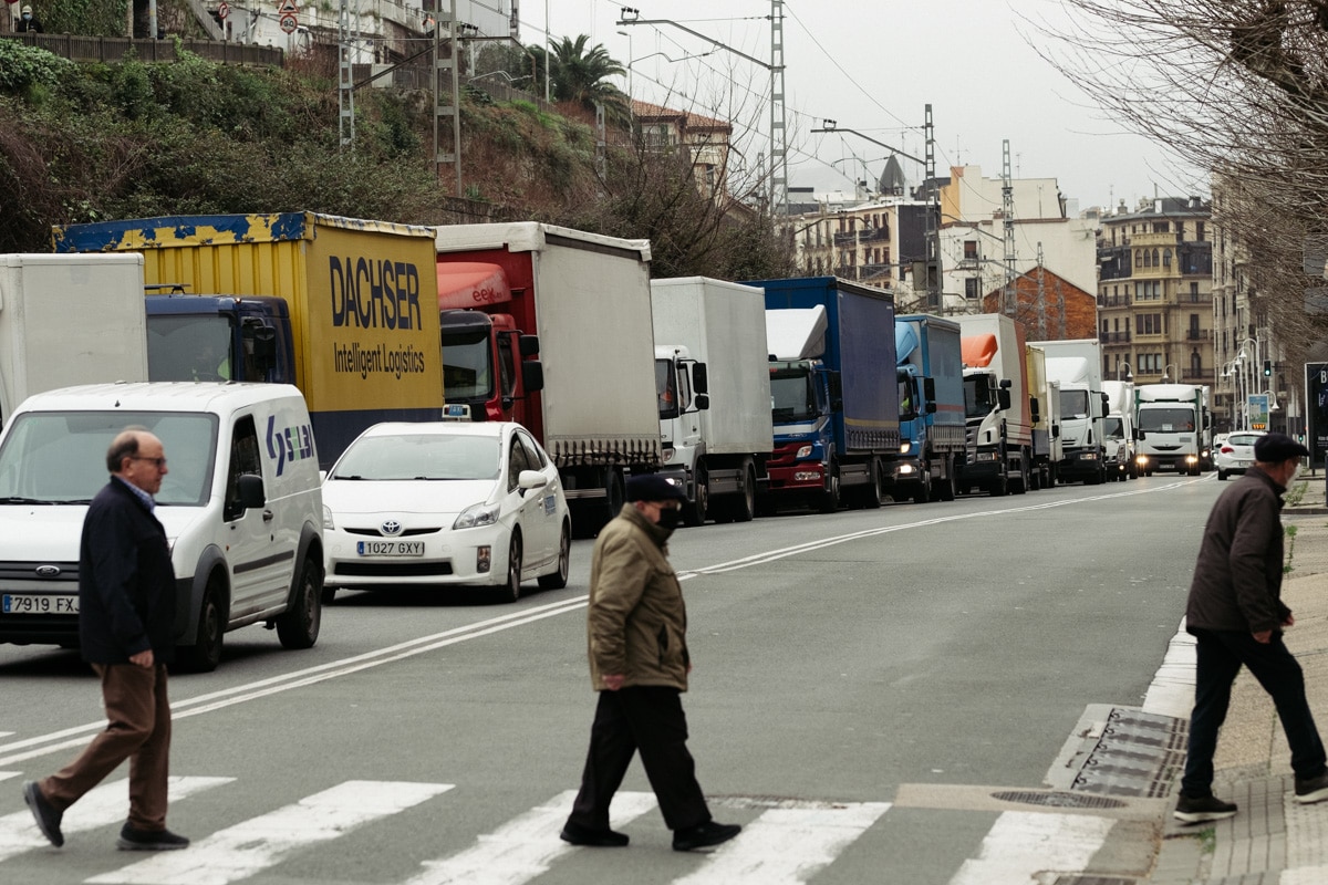 Esta organización sindical llevó a cabo desde las 16 horas de este lunes una caravana de camiones que partió del aparcamiento de LIDL en Olaberria y que discurrió por la N-1 hasta Irun, una movilización que se repetirá el martes a las 8 horas.