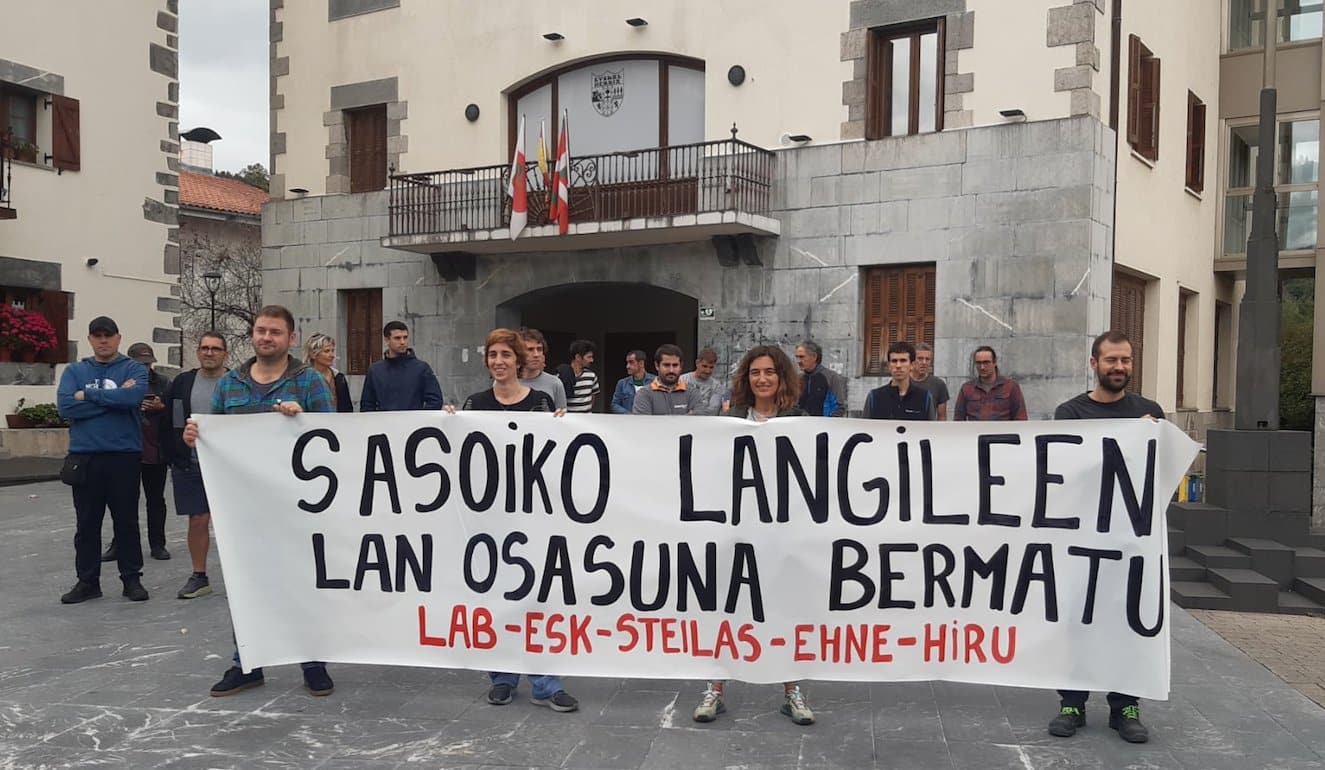 Según han informado fuentes de LAB, en la concentración ha participado una treintena de delegados sindicales que han permanecido media hora detrás de una pancarta con el lema en euskera «Garantizar la seguridad de los trabajadores temporeros».