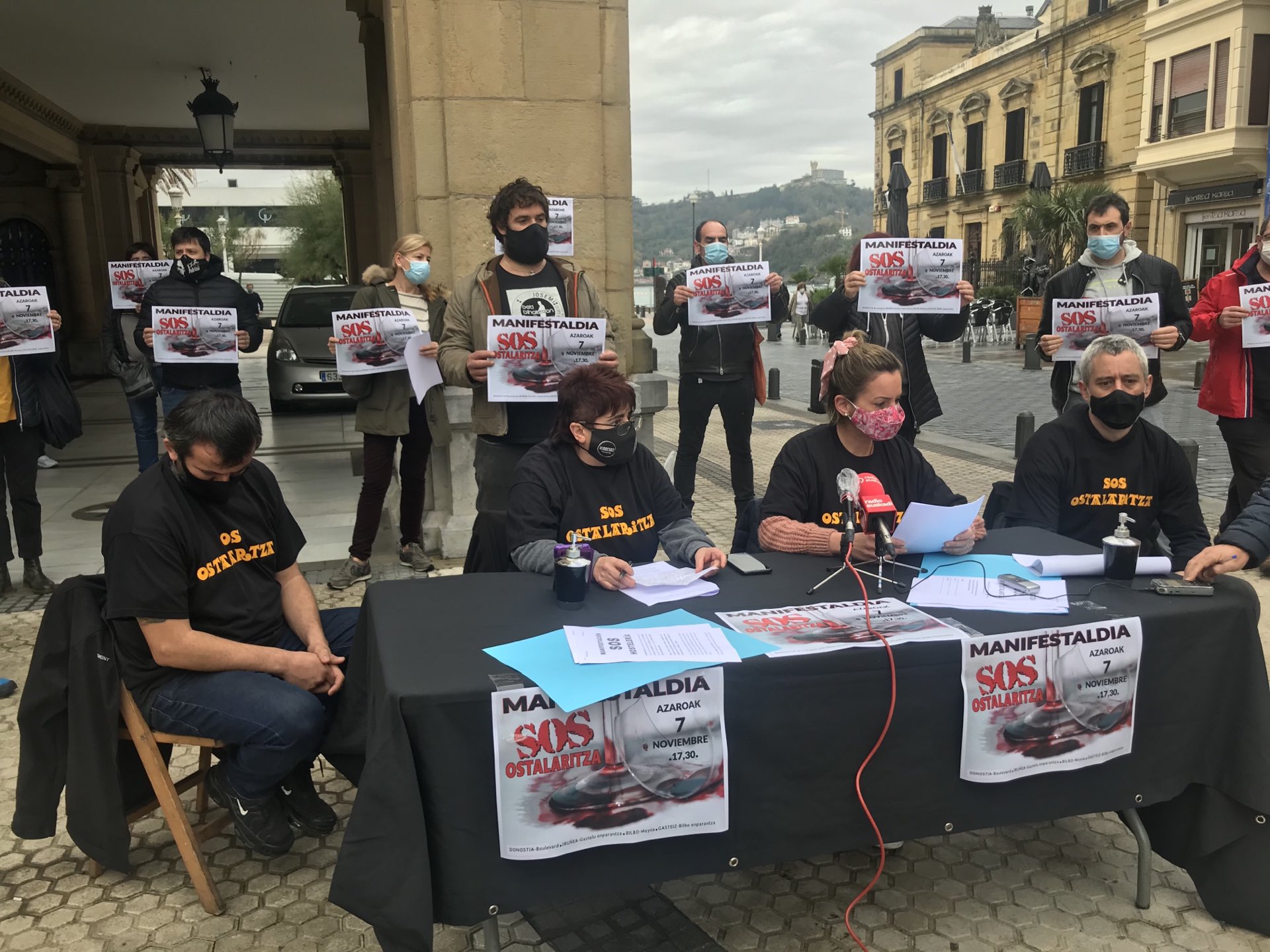 El colectivo de hosteleros SOS Ostalaritza llama a manifestarse el 7 de noviembre «en defensa del sector y frente a las restricciones del Covid-19». Las manifestaciones serán en las tres capitales vascas y en Pamplona. En el caso de Donostia el encuentro será a las 17.30 desde el Boulevard. «No podemos más. Con las nuevas restricciones impuestas a la hostelería, el turismo y el ocio están en riesgo de desaparecer», han dicho representantes de la plataforma esta mañana en San Sebastián.