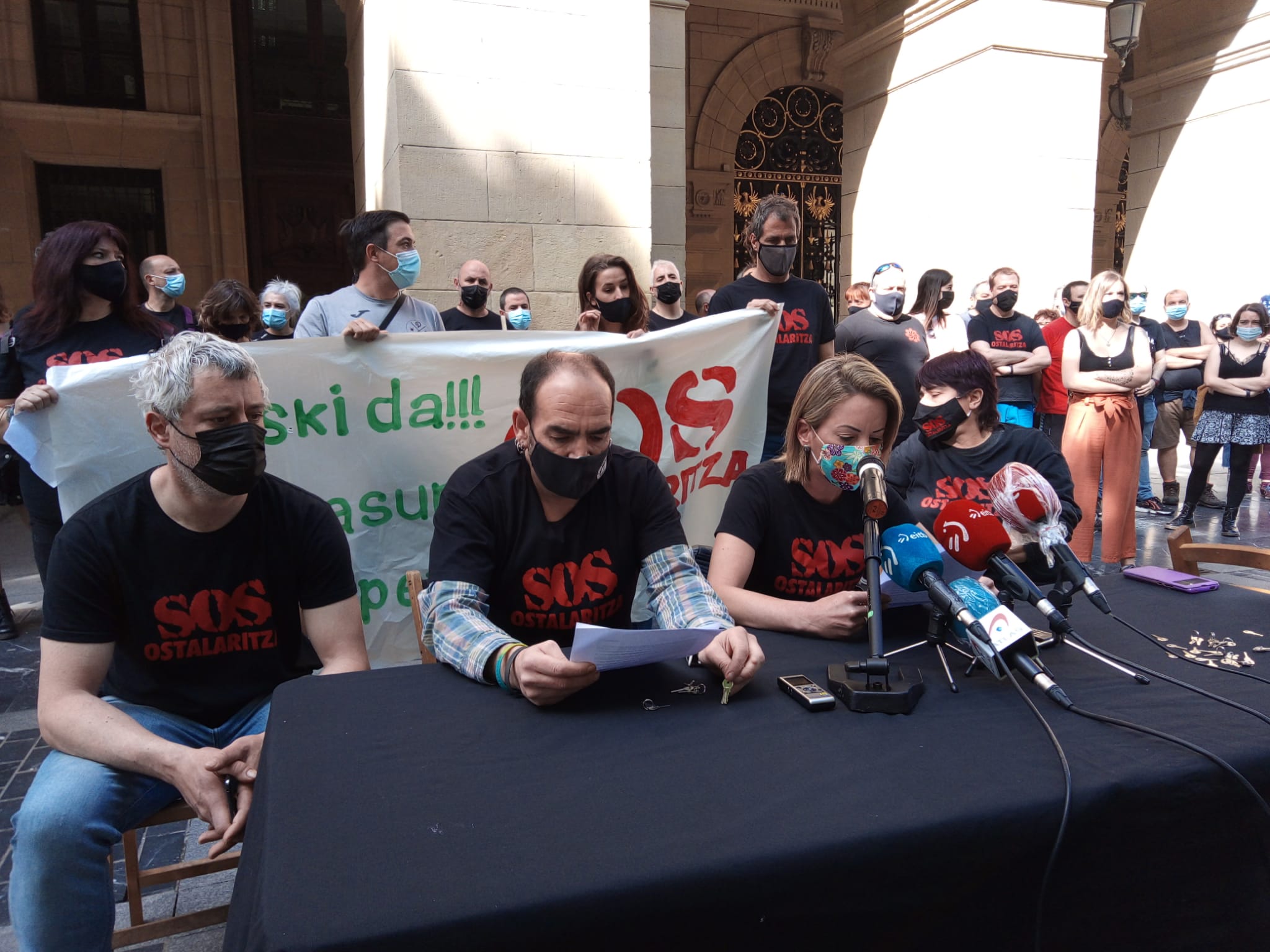 SOS Ostalaritza se ha sumado a las manifestaciones de Ostalaritza Aurrera anunciadas para hoy a las 20.30 horas frente a los consistorios gipuzkoanos, también en Donostia. Y ha vuelto a pedir ayudas económicas y que se termine con la «criminalización» del sector.