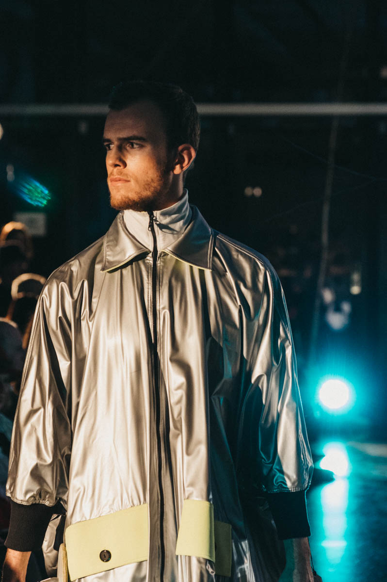 Para mí el diseñador más particular del grupo es Samuel Prince. Dice que el futuro es feminista y aboga por la muerte del género. Trabaja el llamado genderless, la moda neutra o lo que antes conocíamos como unisex. Inspirado en la generación 3.0 presentó prendas de su colección Error. Para mí la más sport de las 5 que pudimos ver. Con un toque futurista, sus prendas son cómodas y neutras.