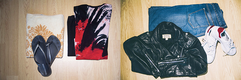Con dos pantalones, uno vaquero y otro negro. Dos calzados diferentes; unas zapatillas para caminar y no terminar con los pies molidos y otro calzado más formal. Camisetas de manga larga y corta para combinar con chaquetas. También una perfecto de cuero negra que siempre va con todo. De esta forma he incluido 12 looks diferentes, uno para cada día, más dos extras para salidas nocturnas, en caso de que las hubiera. Siempre jugando con unas prendas comodín, los pantalones y el calzado.