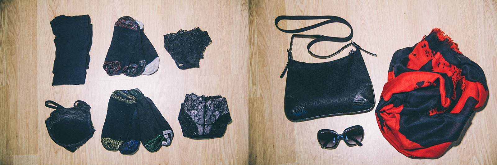 Mi segundo kit básico es el formado por el bolso de mano, de correa larga y que se pueda cruzar, las gafas de sol y el pañuelo, bufanda o pashmina para cuando refresca. No sabéis de los apuros que sacan. También suelo llevar un par de bolsas de tela que son cómodas y muy fáciles de doblar y guardar, además de que no pesan, por si hago compras luego poder llevarlas como si fueran un bolso más.