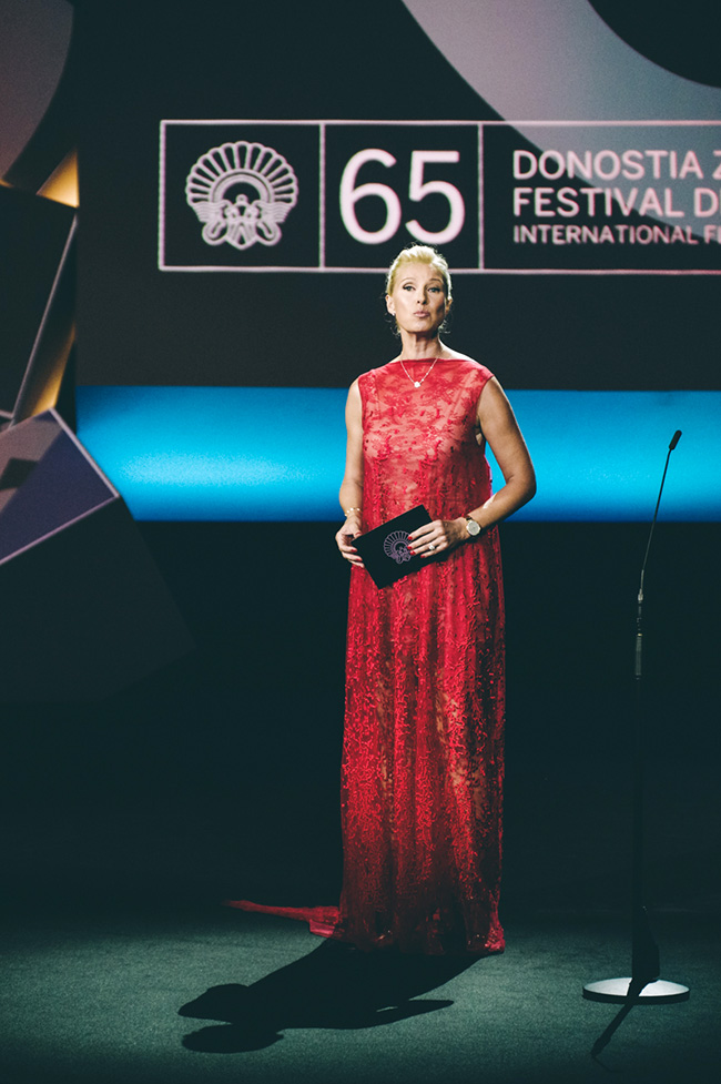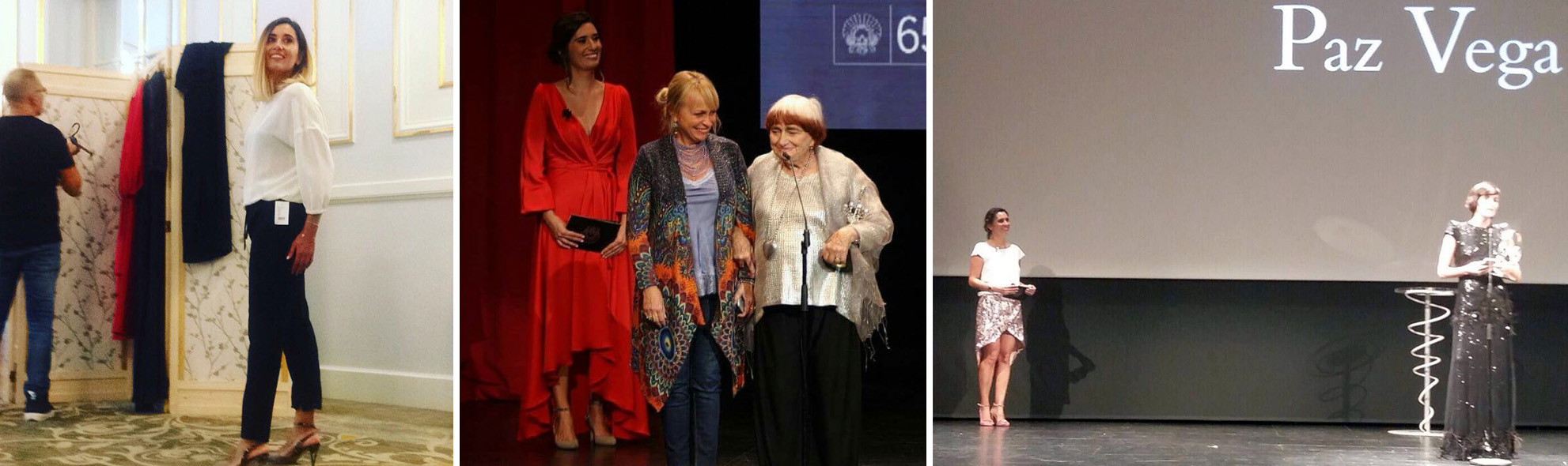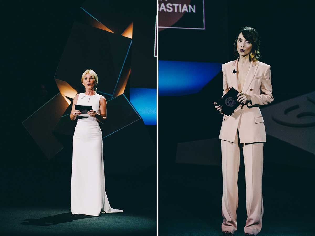 La que más outfits ha lucido ha sido la presentadora Vanessa Rodríguez. Para el día a día, en las introducciones a los directores de la sección Perlas en el Teatro Victoria Eugenia ha vestido los looks que Contxu UzKudun ha preparado para Minimil. Líneas rectas y arquitectónicas y colores neutros, marca de la casa. Durante la gala de entrega del Premio Donostia a la directora belga Agnès Varda, llevó un sexy y favorecedor vestido rojo de espalda abierta, cinturón y bajos asimétricos de la diseñadora Yolanda Torres. Y el dos piezas compuesto de falda pailletes gris y rosa metalizada con blusa blanca de doble gasa que vistió durante la presentación del premio Jaeger-Le Coultre al cine latino lo firma Manuela va de fiesta.