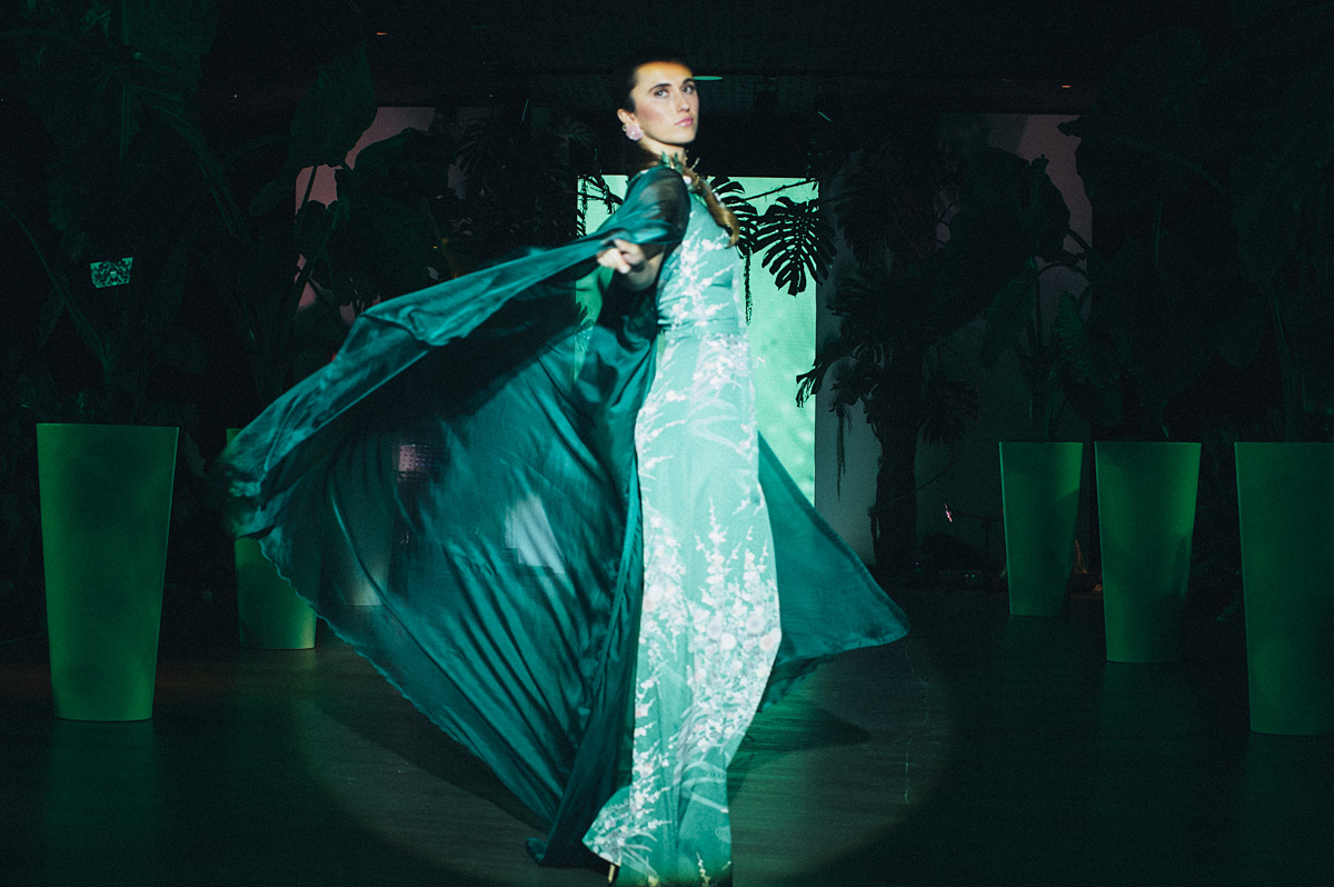 La donostiarra Isabel Zapardiez celebraba su 15 aniversario presentando “My Secret Garden” donde pudimos ver diseños inéditos junto con los más representativos que han marcado la carrera de la diseñadora. Con una puesta en escena en tonos verdes que evocaba un gran jardín, los invitados pudimos disfrutar viendo los diseños ultrafemeninos con predominio del color verde y los motivos florales incluyendo maxi pendientes y zapatos decorados para dar armonía al conjunto. Looks favorecedores y sexies a más no poder donde lleva al universo Couture los clásicos del vestuario femenino como los monos, vestido o pantalones.