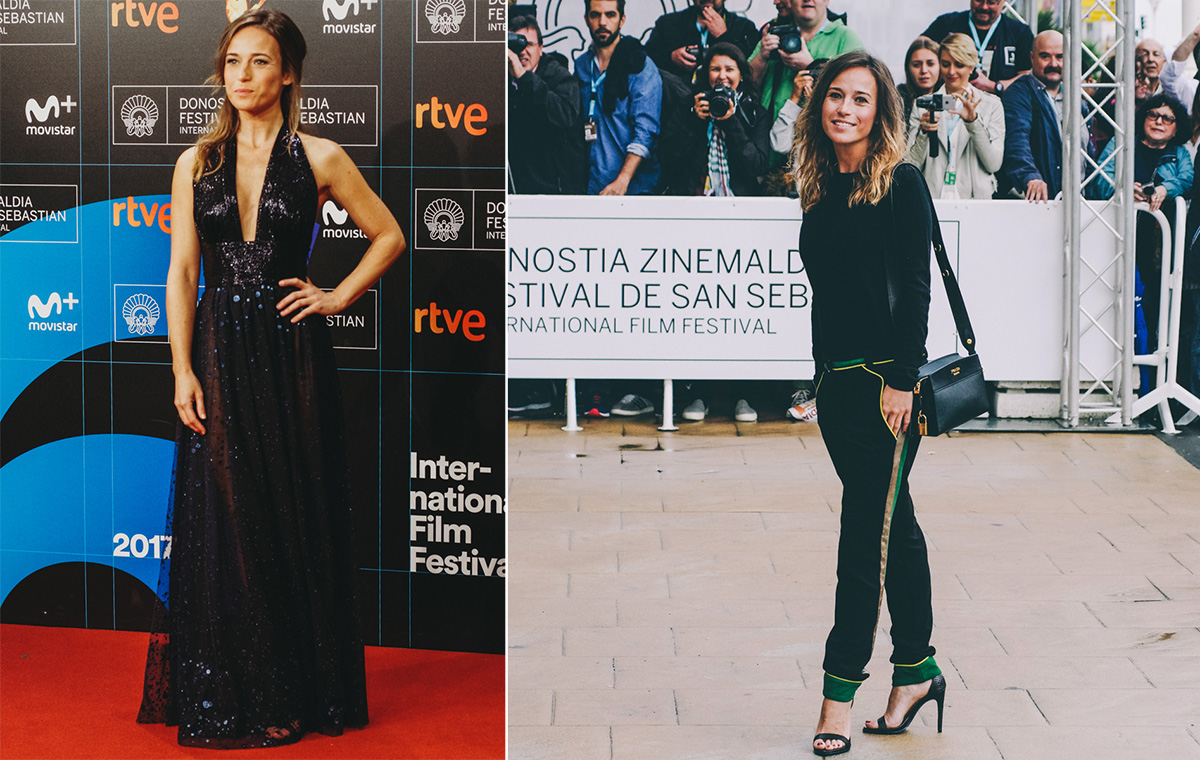 Paz Vega vistió de riguroso negro. A su llegada con un dos piezas de pantalón y mocasines. En la rueda de prensa, una combinación de falda y camisa en lineas sencillas y rectas. Y para recoger el Premio Jaeger-LeCoultre al cine latino con un original diseño negro de paillettes con hombreras y sugerente escote en la espalda de la firma Malne. Muy elegante también en todas sus apariciones, Marta Etura. La donostiarra llegó a su ciudad natal vistiendo un conjunto de pantalón con franjas verdes y amarillas de Isato y durante la gala de clausura lució un vestido azul noche de amplio escote y transparencias que le sentaba fenomenal.