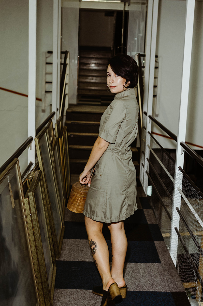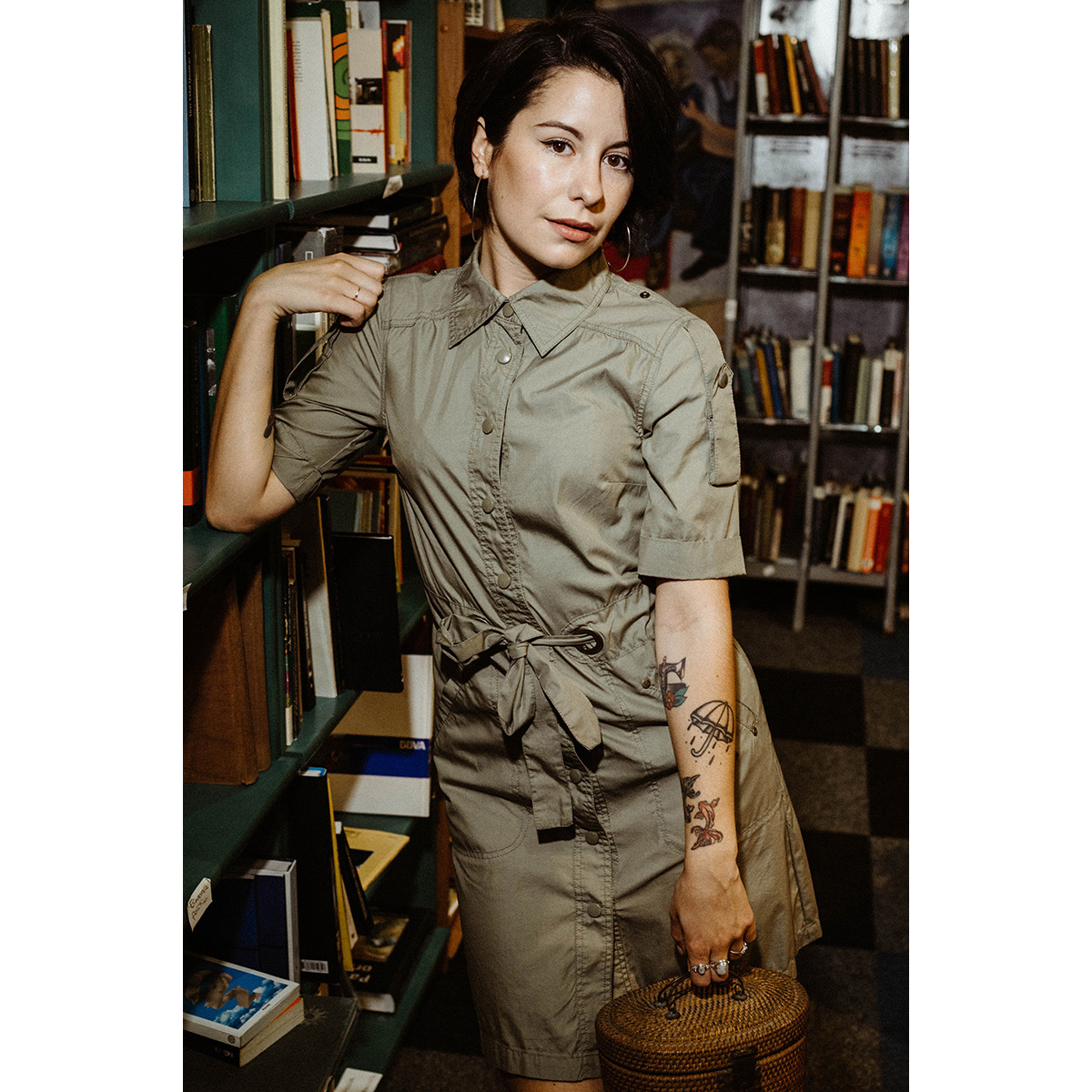 Los vestidos llegan con fuerza para este otoño. Entre las múltiples propuestas sobresalen dos: los románticos o delicados y los más austeros. Y hemos seleccionados unos cuantos con los estampados que pisan fuerte este otoño-invierno. Empezamos con un vestido camisero en tono verde militar, muy femenino y favorecedor, y que hemos complementado con un bolsito rígido de mimbre vintage.