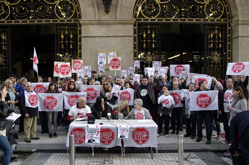 Stop Desahucios se manifiesta ante Kutxa por los casos de Amaia y Kontxi
