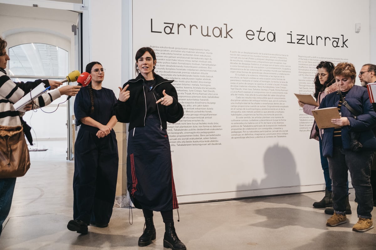 Larruak eta izurrak (Pieles y pliegues), comisariada por Laura Vallés Vílchez, inaugura en Tabakalera de San Sebastián una serie de tres exposiciones vinculadas con la escultura en la que destaca una nueva generación de artistas como June Crespo, Nora Aurrekoetxea, Sahatsa Jauregi y Kimia Kamvari. En esta muestra junto a estas artistas locales participan las internacionales Yael Davids, Iman Issa y Lúcia Koch.