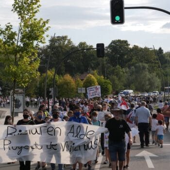 Según el manifiesto, la construcción de cinco bloques nuevos crearía problemas de movilidad y de espacio de una zona que es tranquila y donde el idioma mayoritario, a día de hoy, según los vecinos, es el euskera