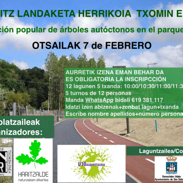 Plantación de árboles en el parque fluvial de Txomin Enea