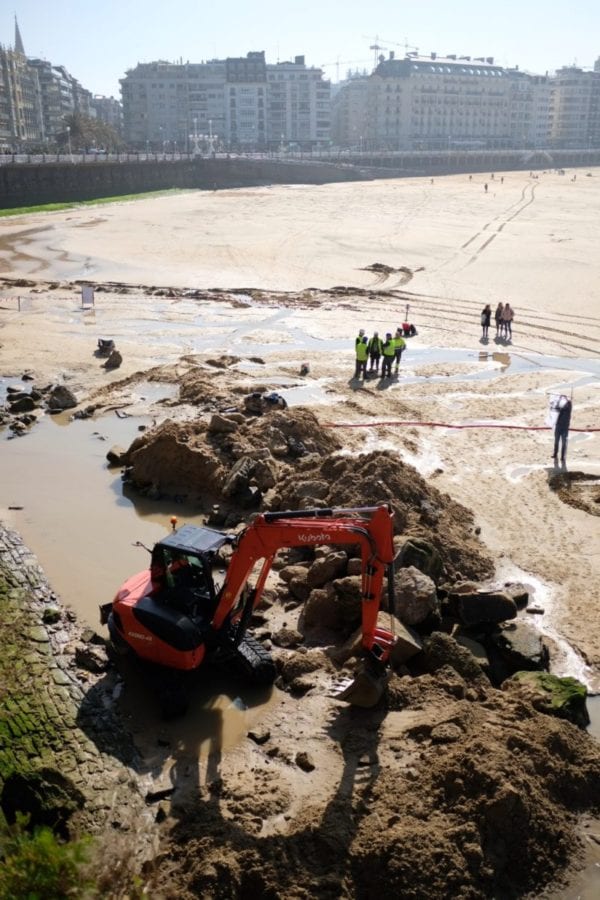 Se dispara la imaginación de los donostiarras viendo la excavación que hoy ha comenzado junto al muro de la Concha,