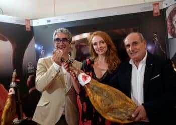 La actriz Cristina Castaño recibe su jamón ibérico en el marco del festival