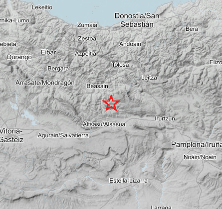 El Instituto Geográfico Nacional registró en la zona de Ataun, entre las 2:30 y las 4:40 horas, una treintena de seísmos de baja magnitud