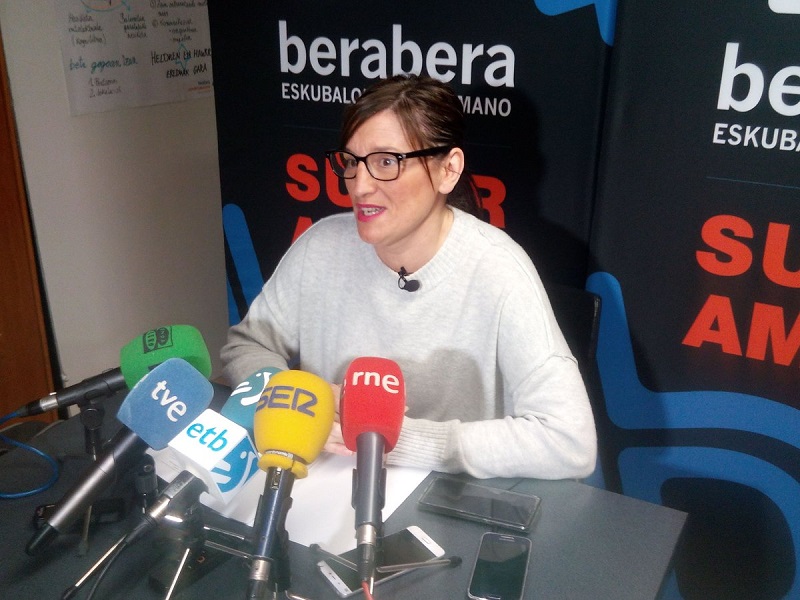 La responsable de Balonmano Bera Bera, Tati Gamendia, compareció ayer ante los medios de comunicación para repasar la actualidad del