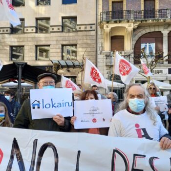 Un grupo de ciudadanos ha querido arropar a esta mujer junto a Stop Desahucios, Alokairu Benta Berri e Inquilinos Azora