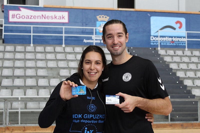 Lara González, jugadora del IDK Gipuzkoa, y Mikel Motos, del Delteco GBC, escenificaron ayer en el Gasca la buena relación