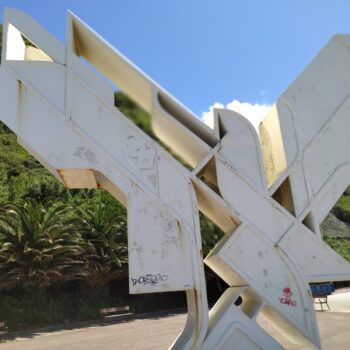 Un vecino de Gros, Miguel C., lleva tiempo preocupado por el estado de la escultura de Basterretxea