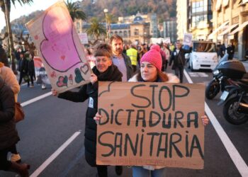 Manifestación de Bizitza contra el pasaporte covid, la mascarilla y la vacuna infantil
