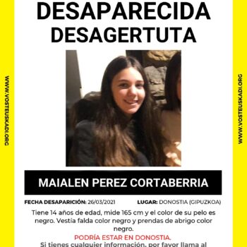 Hay que llamar al 112 si hay pistas sobre el paradero de Maialen Pérez Cortaberría