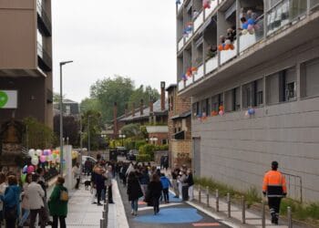 Escolares y mayores estrenan la peatonalización de la calle Atarizar