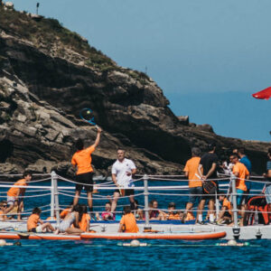 Muy original ha resultado la exhibición de tenis entre los jugadores Eduard Esteve Lobato y el anfitrión Alex Maiztegi. Una exhibición que se ha desarrollado este mediodía en el mar y ante la mirada de bañistas, playeros y embarcaciones presentes en la zona.
