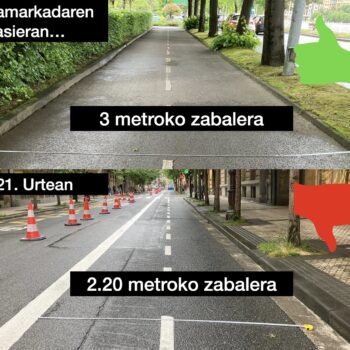 La asociación ciclista denuncia que durante la obra del Paseo de la Concha se traslade a los peatones exclusivamente al bidegorri