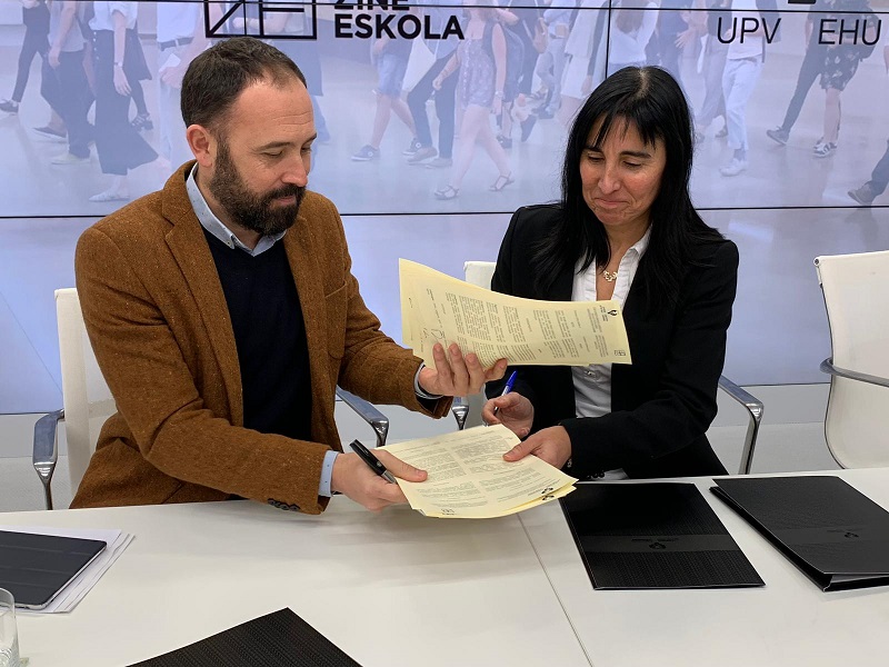 La rectora de la Universidad del País Vasco/Euskal Herriko Unibertsitatea (UPV/EHU), Nekane Balluerka y el diputado gipuzkoano de Cultura, Denis