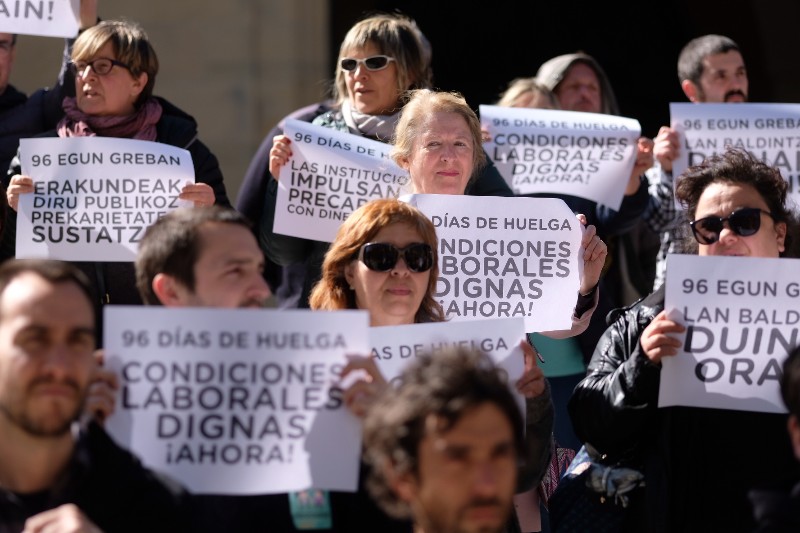 ELA, Steilas, CCOO, LAB y UGT hacen gala del «amplio seguimiento»del paro de estos días, que se retomará en abril