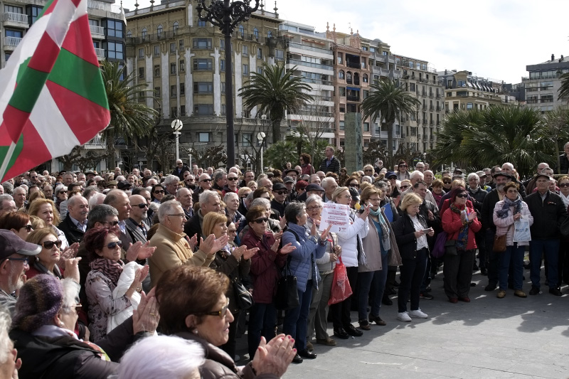 Los jubilados gipuzkoanos han vuelto a darse cita hoy en en Donostia, en este caso en Alderdi Eder, desde donde han vuelto a hacerse escuchar en sus reclamación de unas pensiones dignas y ajustadas al IPC.