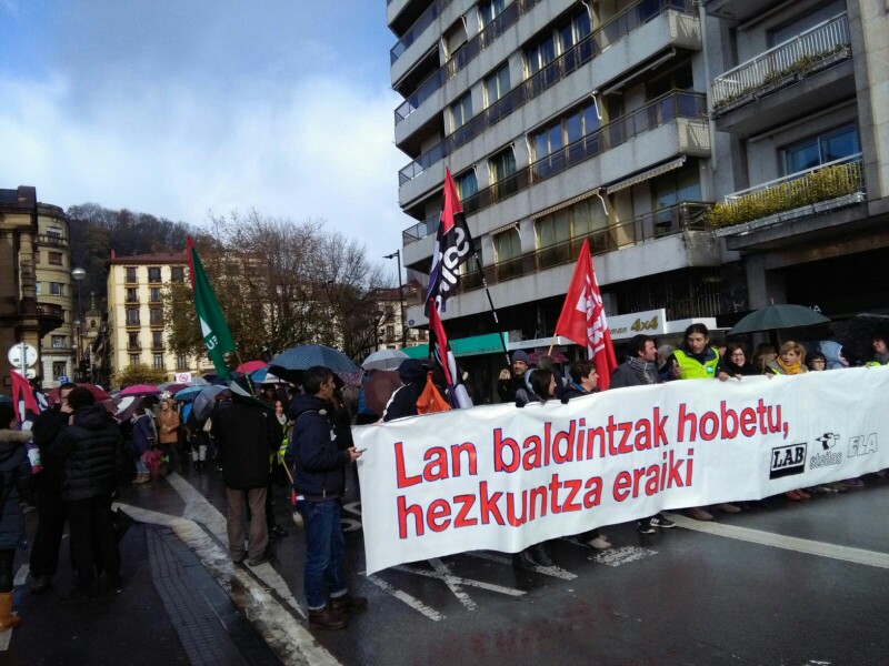 Representantes de CCOO, UGT, LAB y ELA han vuelto a manifestarse esta mañana por tercera vez por la situación del